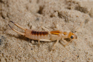 Zandoorworm – Labidura riparia – vertegenwoordigd door presentatrice Emma Wortelboer.